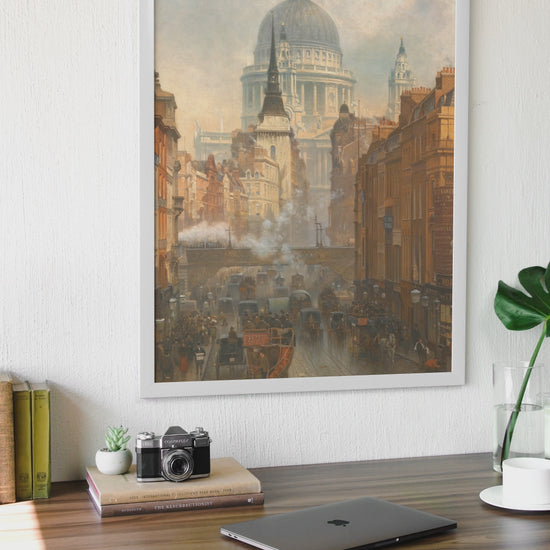 Holen Sie sich mit diesem zeitlosen Kunstdruck ein Stück Geschichte in Ihr Zuhause. Erhältlich in verschiedenen Größen, passend zu Ihrem Raum. Ob Sie Kunstsammler, Liebhaber der reichen Geschichte Londons oder jemand sind, der die Schönheit urbaner Landschaften schätzt – dieser Druck verleiht jedem Raum Eleganz und Tiefe.